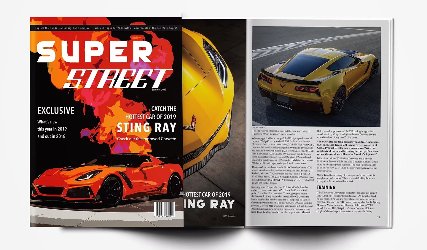 Super Street is a magazine for car enthusiasts of all ages, celebrating automobiles as a lifestyle. From showcasing sporty new models to vintage classics and rally drivers sharing their passion, the magazine features dynamic layouts and bold colors that create an energetic, engaging reading experience. The cover of the magazine I developed on using a single raw image and using photoshop effects to bringing vibrant colours together.