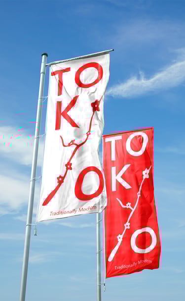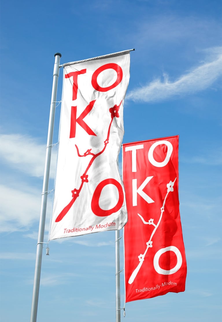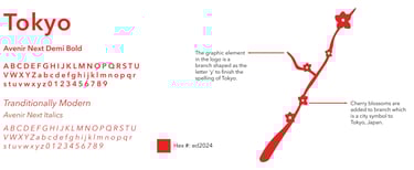 Avenir Next was the typeface used, and red and white were colours chosen as they are Japan's chosen colour for their country flag.
